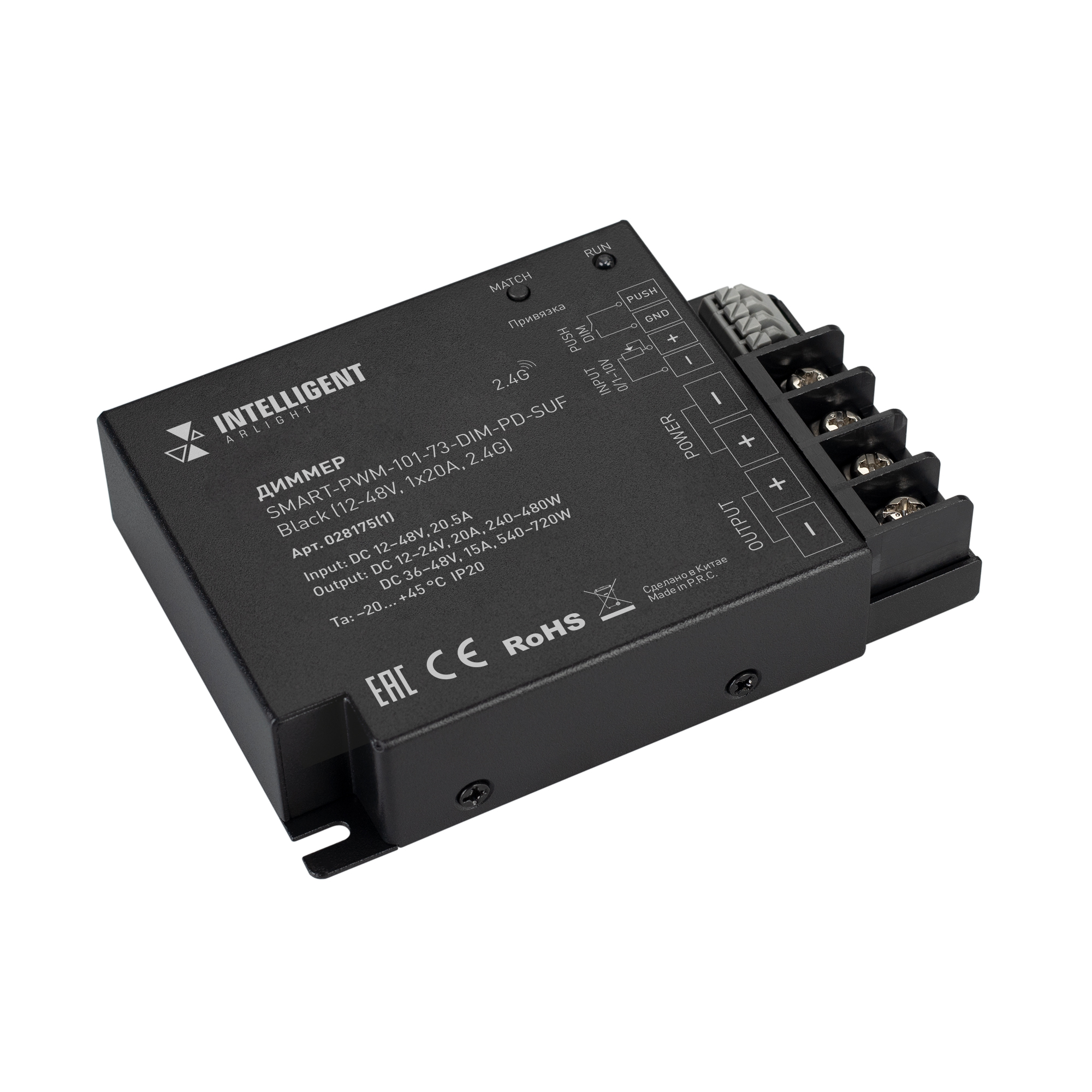 INTELLIGENT ARLIGHT Диммер SMART-PWM-101-73-DIM-PD-SUF Black (12-48V, 1x20A, 2.4G) (IARL, IP20 Металл, 5 лет) 028175(1) в Сочи