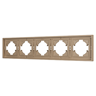 Рамка пластиковая на 5 постов, под встраиваемый механизм. Цвет - золотой. Среднего уровня герметичности IP20. Ориентация монтажа горизонтальная.