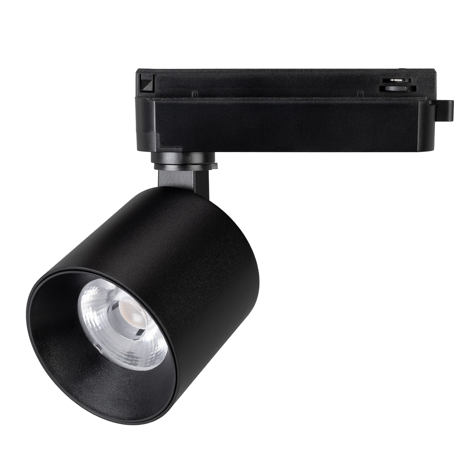 Светильник для однофазных треков, 16 Вт. Цвет свечения ТЁПЛЫЙ 3000K, световой поток 1600 лм, угол 20°, CRI>90. Корпус круглый, металл, цвет черный, IP20. Размеры Ø74x69,6 мм. Монтаж на трек 1-фазный. Входное напряжение AC220-240V, мощность 20 Вт. Драйвер встроенный (25-40V, 500 mA).Пульсация <1%.
